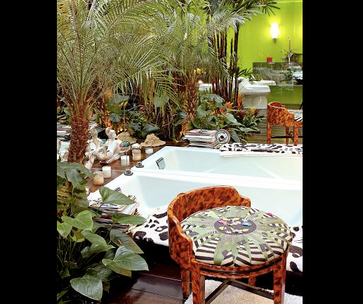 If it weren't for my current obsession with turquoise right now, this dramatic pink foyer would be top of the list. Love it! Design by Jonathan Berger (including family room below)